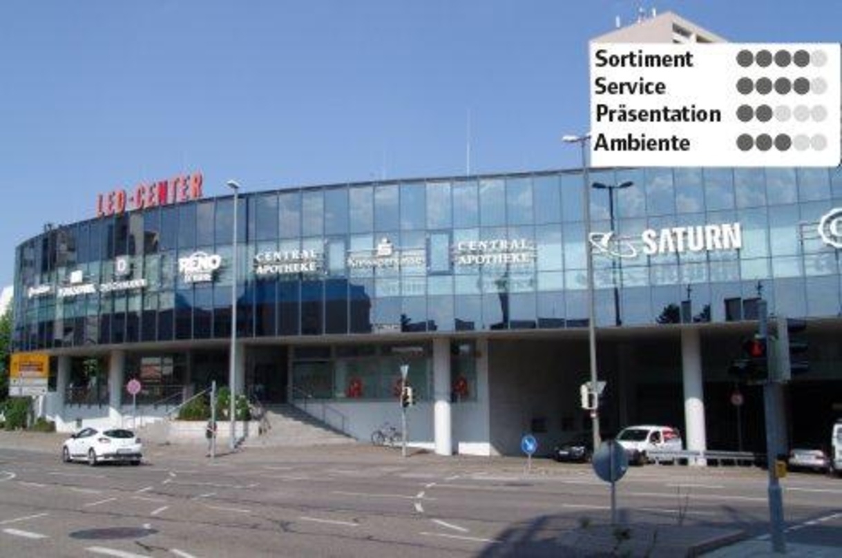 Leonberg, etwa 13 Kilometer westlich von Stuttgart gelegen, zählt mit 45.000 Einwohnern zu den größeren Städten im Landkreis Böblingen. Im Ortskern befindet sich das Einkaufszentrum "Leo-Center", das auf einer Nutzfläche von 27.000 Quadratmetern rund 90 Fachgeschäfte beherbergt. Mit dabei ist ein Saturn-Markt, den man wohl zu den kleineren seiner Art zählen muss.
