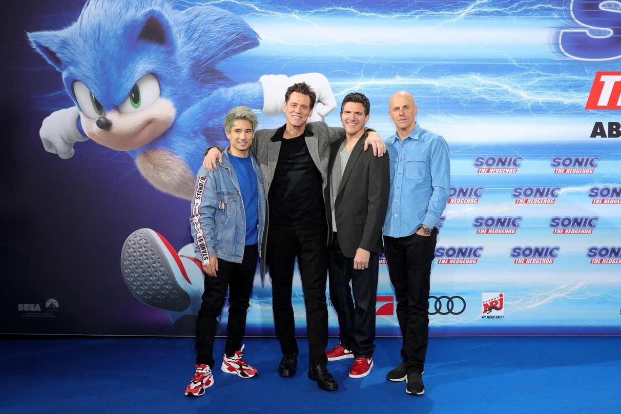 Mega Stimmung auf dem blauen "Sonic the Hedgehog"-Teppich als Comedy-Legende Jim Carrey und YouTube-Star Julien Bam, Sonics deutsche Stimme, sich in Berlin den Autogramm- und Interviewwünschen der Fans und der Presse stellten. Zu den Prominenten, die den süßesten Igel der Welt feierten, zählten u.a. die Schauspieler August Wittgenstein, Tom Wlaschiha und Jördis Triebel sowie Model Elena Carriere und Influencer Nico Abrell. Mit Jubelrufen wurden die Sonic-Stars auf der Bühne des voll besetzten Zoo Palasts begrüßt, der an diesem Abend in blau erstrahlte. Jim Carrey dankte dem Publikum mit einem spontanen Bad in der Menge, das den Entertainer zu komödiantischen Höchstform auflaufen ließ. Mehr davon gibt es in Sonics erstem Kinofilm ab 13. Februar auf der großen Leinwand zu sehen! Unser Foto zeigt (v.l.n.r.): YouTube-Star Julien Bam, US-Schauspieler Jim Carrey, Regisseur Jeff Fowler und Produzent Neal H. Moritz. (PR-Veröffentlichung)