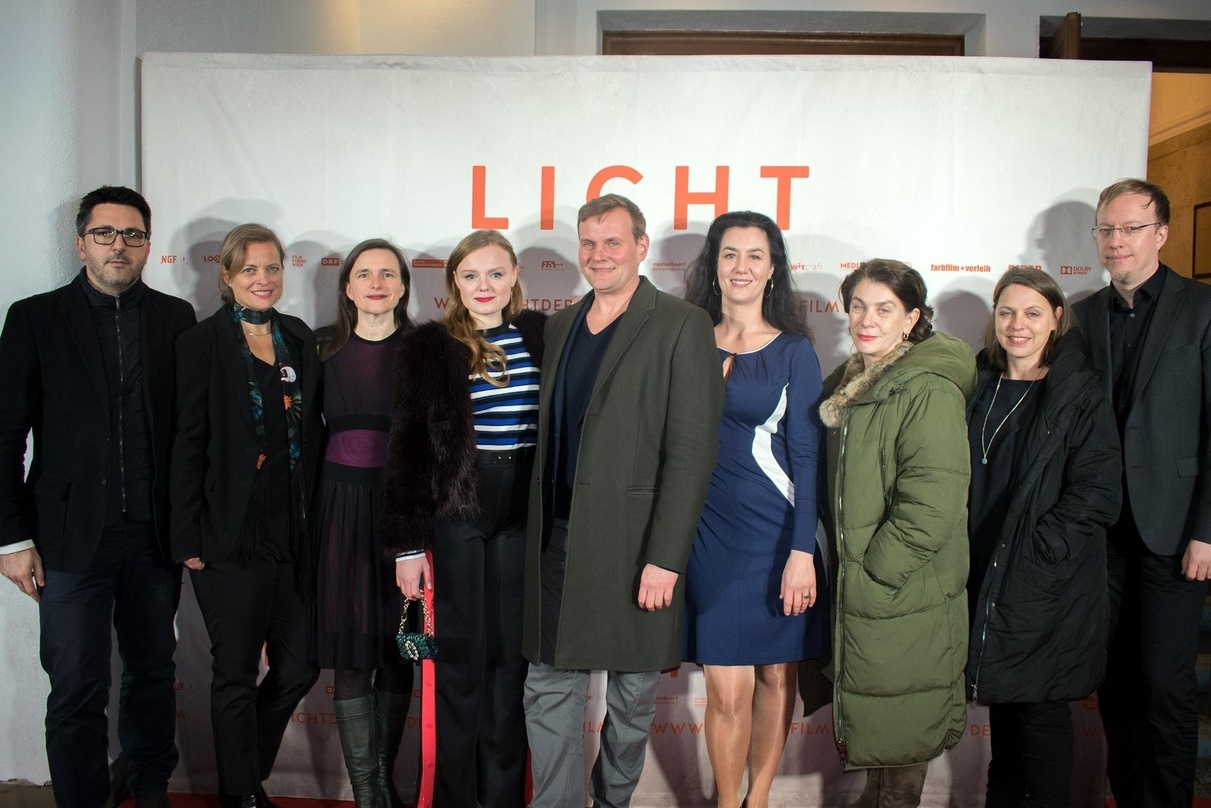 Im Berliner Delphi Filmpalast hat Barbara Alberts Romanverfilmung "Licht" um eine von Maria Dragus gespielte junge Pianistin, die in der Wiener Gesellschaft des 18. Jahrhunderts ihren Platz finden will, gestern seine Deutschlandpremiere gefeiert. Neben der Regisseurin (3.v.l.) und der Hauptdarstellerin (4.v.l.) konnte farbfilm-verleih-Geschäftsführer Alexandre Dupont-Geisselmann (links im Bild)...