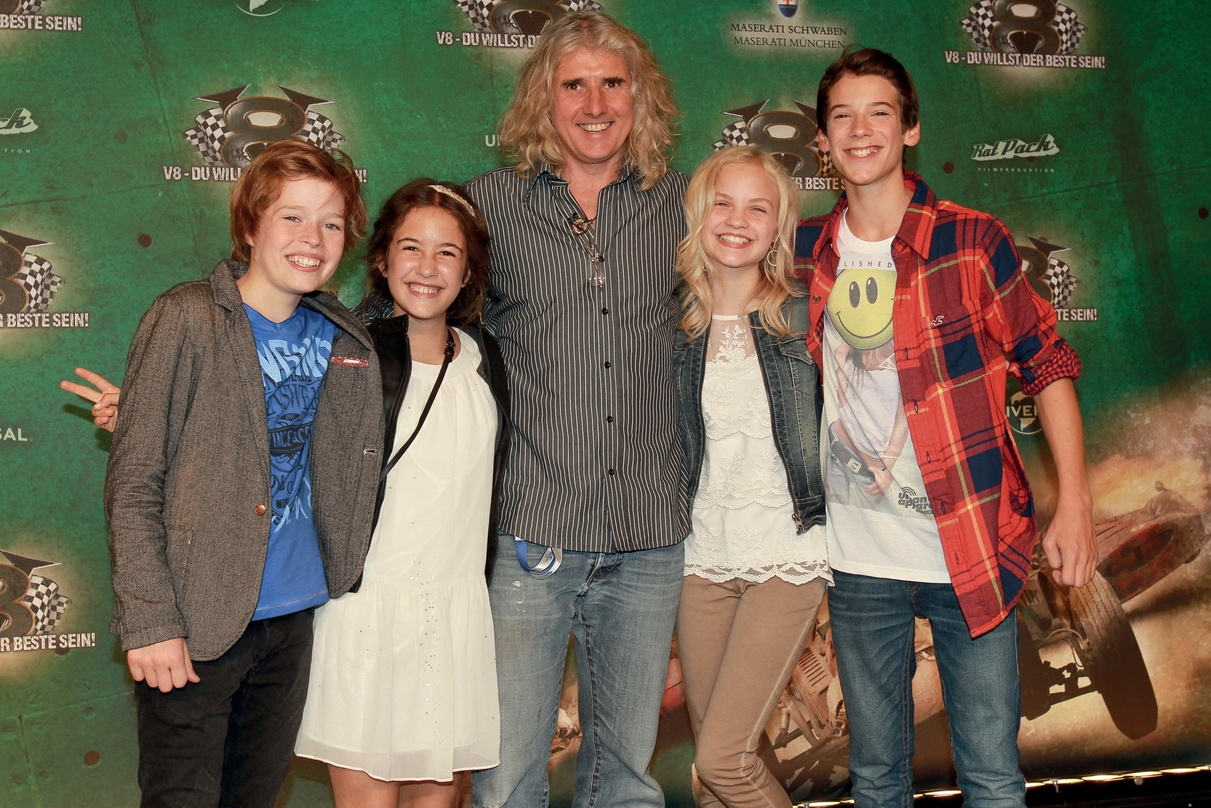 Am Nachmittag des 15. September feierte Joachim Masanneks "V8 - Du willst der Beste sein" im Münchner Mathäser Premiere. Neben dem Regisseur (Mitte) präsentierten auch seine jungen Hauptdarsteller Georg Sulzer, Maya Lauterbach, Klara Merkel und Samuel Jakob gutgelaunt das neue Abenteuer.