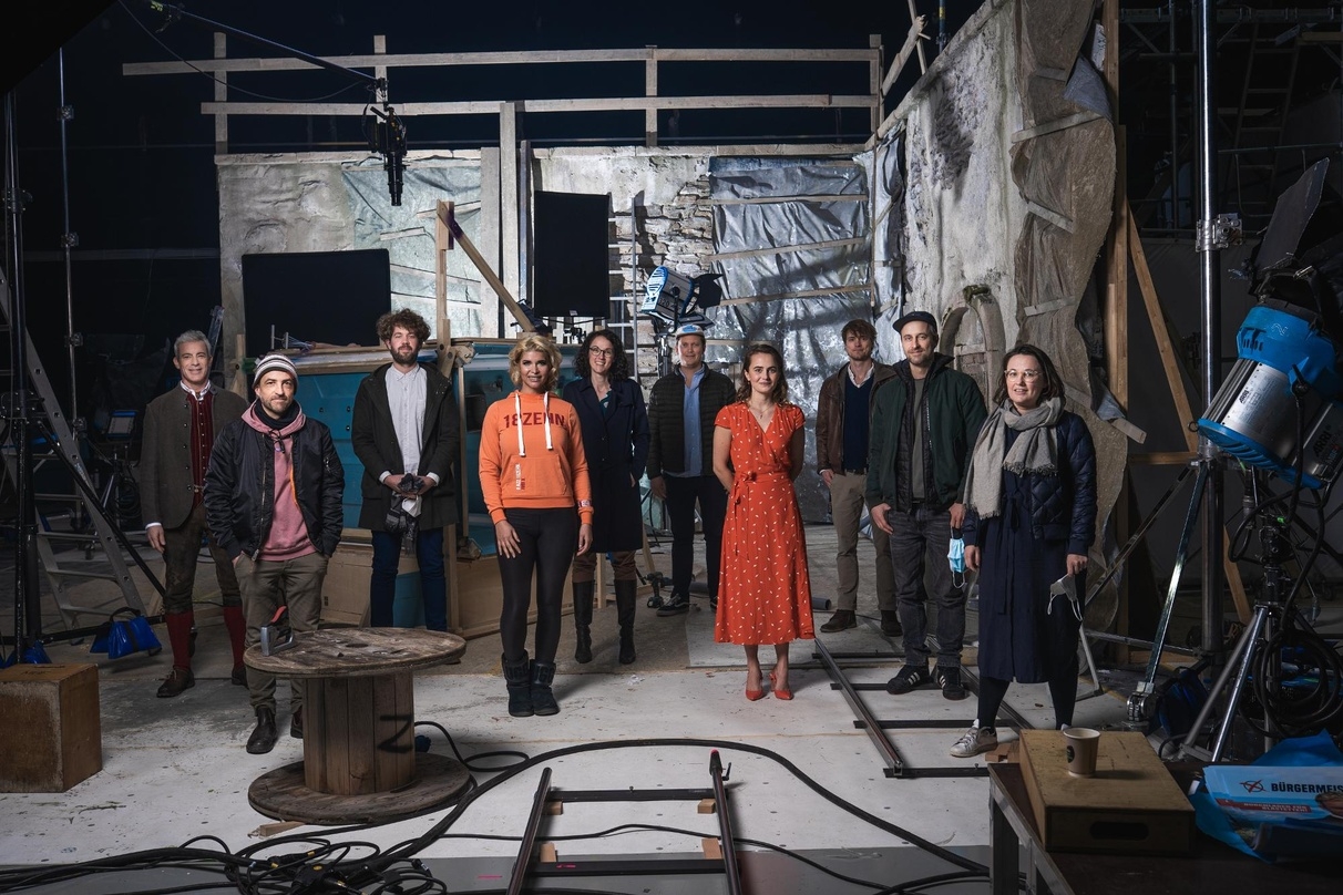 Am Montag haben die Dreharbeiten zum schwarzhumorigen Confined-Space Thriller "Ach du Scheisse!" begonnen. Im von der HessenFilm und Medien geförderten Regiedebüt von Lukas Rinker hat Architekt Frank (Thomas Niehaus) nur 90 Minuten Zeit, um sich aus einem abgestürzten und verschlossenen Dixi-Klo zu befreien und seine Freundin Marie (Olga von Luckwald) aus dem Griff von Bürgermeister Horst (Gedeon Burkhard) zu retten, bevor eine Abrisssprengung ihn sein Leben kostet. In weiteren Rollen: Friederike Kempter, Björn Meyer, Mario Fuchs, Rodney Charles, Micaela Schäfer (Casting: Anna Kowalski). Produzenten sind Tonio Kellner und Jakob Zapf (Neopol Film) in Koproduktion mit Studio Hamburg Enterprises (Thore Vollert) für den Vertrieb in Deutschland, sowie im Weltvertrieb von Arri Media International (Antonio Exacoustos, Moritz Hemminger, Ramona Sehr).Unser Foto zeigt (v.l.): Gedeon Burkhard, Knut Adass (DoP), Lukas Rinker (Regie), Micaela Schäfer, Hess. Ministerin für Wissenschaft und Kunst Angela Dorn, Tonio Kellner, Olga von Luckwald, Jakob Zapf, Thomas Niehaus und HessenFilm und Medien Geschäftsführerin Anna Schoeppe (PR-Veröffentlichung; Foto: Daniel Dornhöfer)