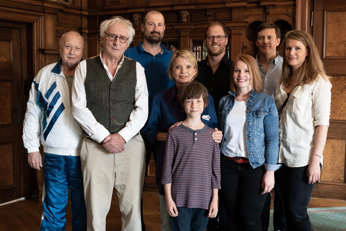 Letzte Woche haben die Dreharbeiten von "Max und die wilde 7" begonnen und finden noch bis Ende August in Hessen statt. Das Kinoabenteuer basiert auf der beliebten, mehrfach ausgezeichneten Buchreihe von Lisa-Marie Dickreiter und Winfried Oelsner, der auch Regie führt. Für die Produktion verantwortlich zeichnen Martin Richter und Christian Becker (Westside Filmproduktion / Rat Pack Filmproduktion) in Zusammenarbeit mit Tonio Kellner (Neopol Film) und in Ko-Produktion mit dem neu gegründeten Medienunternehmen unter der Führung von Fred Kogel, das aus der Tele München Gruppe, Universum Film, i&u TV sowie Wiedemann & Berg Film hervorgeht. Das neue Unternehmen wird auch den Kinostart, der für 2020 geplant ist, übernehmen. Unser Bild zeigt (v.l.n.r.): die Darsteller Thomas Thieme und Günther Maria Halmer, Regisseur Winfried Oelsner, die Darsteller Uschi Glas und Jona Eisenblätter, Produzent Martin Richter (Rat Pack Filmproduktion), Marion Wagner (HessenFilm und Medien), Produzent Tonio Kellner (Neopol Film) und Elena Lindenzweig (HessenFilm und Medien). Foto: Daniel Dornhöfer (PR-Veröffentlichung)